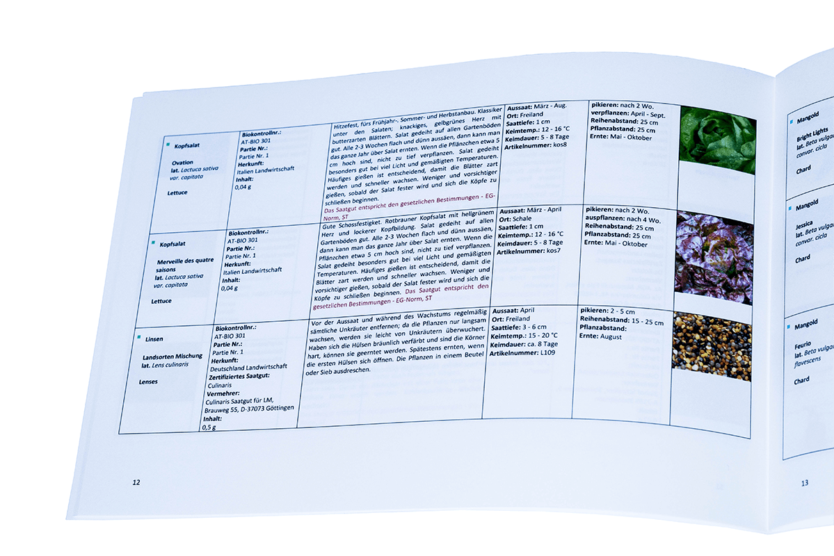 Beigelegt ist ein Booklet mit der Saatgutliste inkl. Beschreibung zur Aussaat, Keimdauer, Ernte, BIO-Zertifizierungsnummer, etc. Einfach die entsprechende Schutzfolie eindrücken und schon können die Samen* der gewünschten Gemüse-, Heilpflanzen- oder Kräutersorten** einzeln mit dem Finger entnommen und in Erde (oder sonstiges Anzuchtmedium) in das Leben gerufen werden. Mit den beigelegten Infos kannst du sofort losstarten ohne Zeit zu verlieren oder dich stundenlang einzulesen.