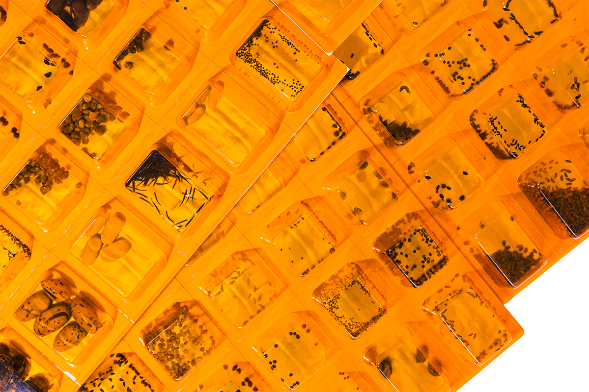Aus der Pharmazie stammende Behälter zum Schutz des empfindlichen Saatguts vor UV-Licht und Transportschäden