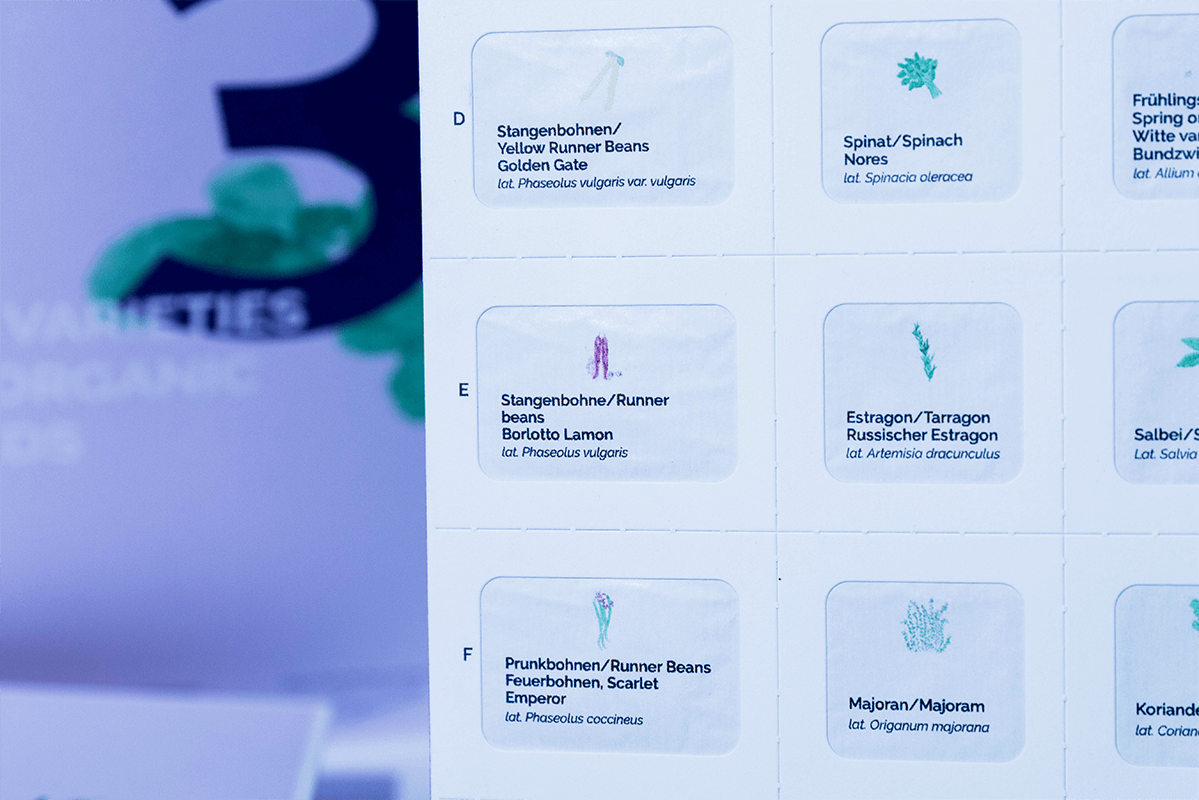 Auf der Rückseite der Blister befinden sich 28 verschiedene Einheiten. Die unterschiedlichen Gemüse-, Heilpflanzen- und Kräutersorten sind beschriftet und mit kleinen Bildern gekennzeichnet – mit der Hand gemalte Illustrationen unserer Künstlerin Pathita, die durch ihre gemalten Aquarelle die detailreiche Schönheit der Natur eingefangen hat. Als Inspiration für deinen grünen Daumen!